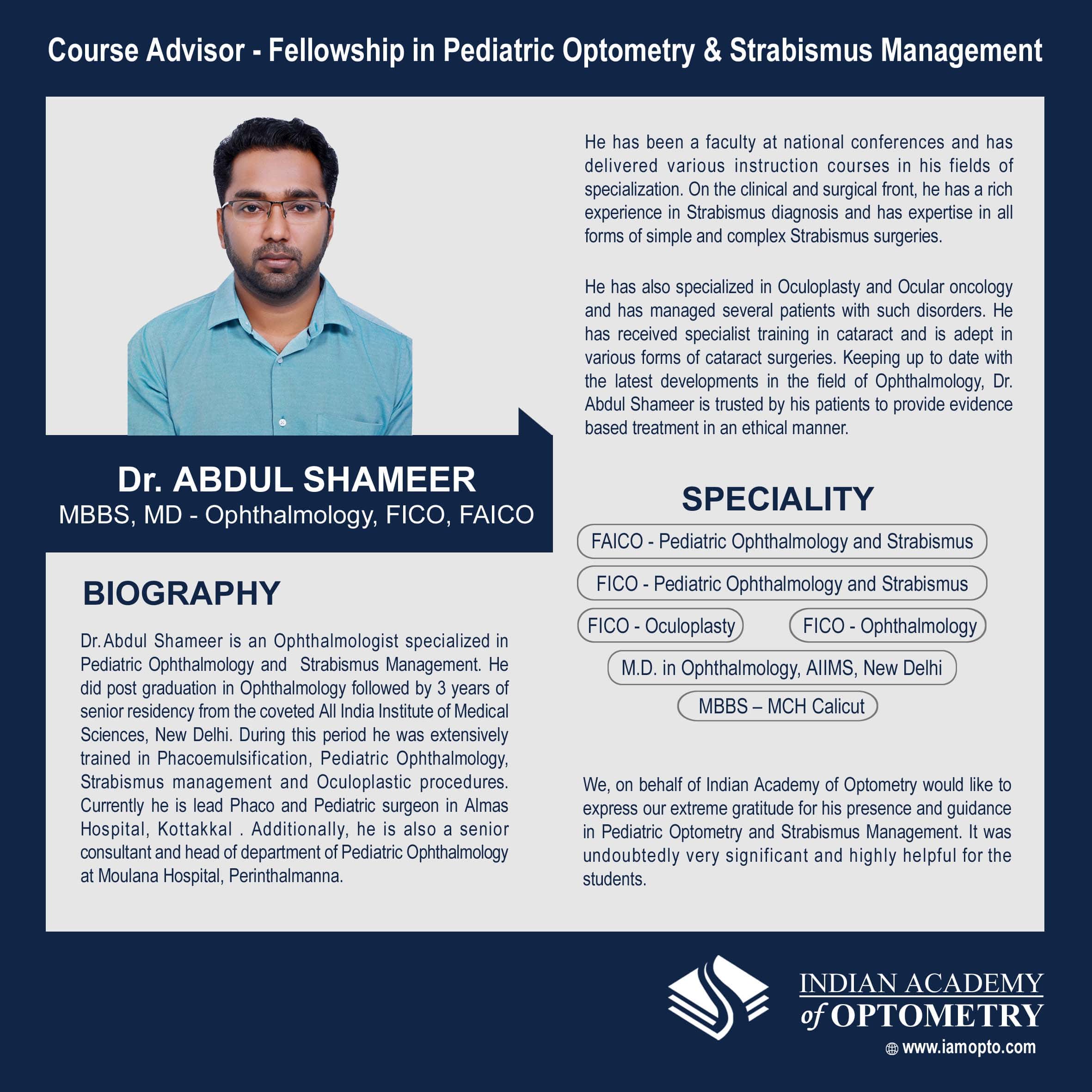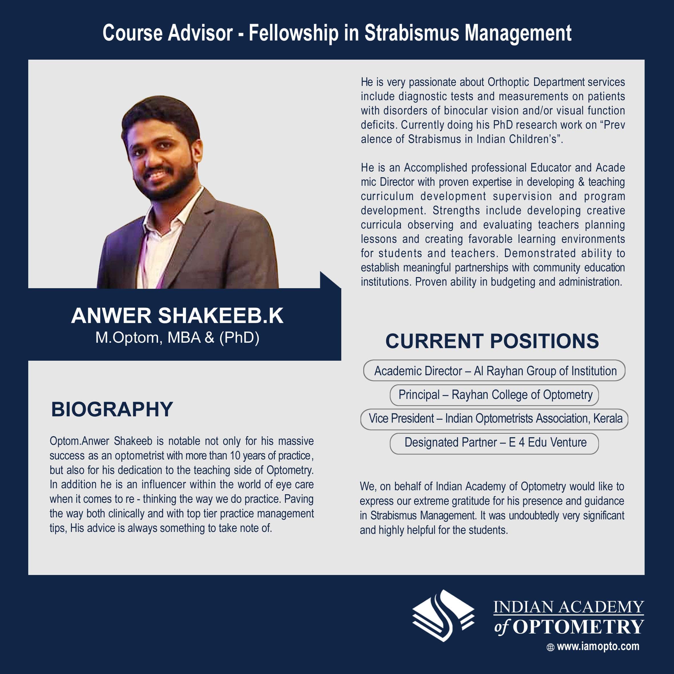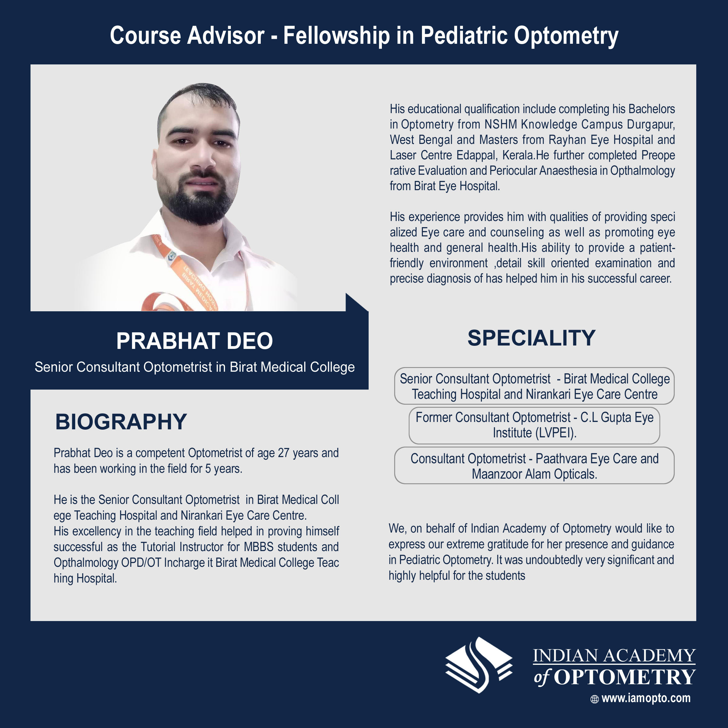 The Indian Academy of Optometry is an Online Optometry Academy. Its goal is to enhance and maintain excellence in optometric practice by both fostering research and disseminating knowledge in vision science. The optometry field is constantly changing.The Academy recognizes that optometrists must receive quality continuing education and the most current information about vision science research.